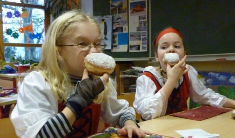 Am 31.01.2013 war es endlich wieder soweit. Der von den Kindern herbeigesehnte Faschingstag wurde ausgiebig mit Sport, Musik, Spiel, Schminken, Basteln und Pfannkuchenessen gefeiert. Viele Grundschüler erschienen bereits in ihren tollen Kostümen in der Schule. Es trafen Erdbeeren auf Hexen, Star-Wars-Figuren auf Mäuse, Bauchtänzerinnen auf Clowns und Polizisten auf Cowboys. Nachdem das närrische Treiben feierlich eröffnet wurde, absolvierten die Kinder in der Sporthalle Spiele und stärkten sich im Anschluss daran mit äußerst schmackhaften Pfannkuchen. Schüler, die noch nicht geschminkt waren, konnten dies nachholen und sich passend zu ihrer Verkleidung anmalen lassen. Musik, Spiele und Spaß rundeten das bunte Programm ab. Wer es etwas ruhiger mochte, der konnte sich beim Faschingsbasteln selbst etwas herstellen. Ein besonderer Höhepunkt dieses Tages war der Besuch des Zauberers Holli mit seiner bezaubernden Assistentin Linchen. Gespannt verfolgten alle Grundschüler und Lehrer die verblüffenden Zauberkünste und durften teilweise sogar selbst dem großen Magier assistieren.