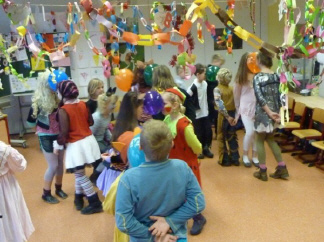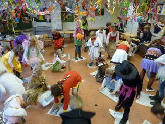 Am 31.01.2013 war es endlich wieder soweit. Der von den Kindern herbeigesehnte Faschingstag wurde ausgiebig mit Sport, Musik, Spiel, Schminken, Basteln und Pfannkuchenessen gefeiert. Viele Grundschüler erschienen bereits in ihren tollen Kostümen in der Schule. Es trafen Erdbeeren auf Hexen, Star-Wars-Figuren auf Mäuse, Bauchtänzerinnen auf Clowns und Polizisten auf Cowboys. Nachdem das närrische Treiben feierlich eröffnet wurde, absolvierten die Kinder in der Sporthalle Spiele und stärkten sich im Anschluss daran mit äußerst schmackhaften Pfannkuchen. Schüler, die noch nicht geschminkt waren, konnten dies nachholen und sich passend zu ihrer Verkleidung anmalen lassen. Musik, Spiele und Spaß rundeten das bunte Programm ab. Wer es etwas ruhiger mochte, der konnte sich beim Faschingsbasteln selbst etwas herstellen. Ein besonderer Höhepunkt dieses Tages war der Besuch des Zauberers Holli mit seiner bezaubernden Assistentin Linchen. Gespannt verfolgten alle Grundschüler und Lehrer die verblüffenden Zauberkünste und durften teilweise sogar selbst dem großen Magier assistieren.