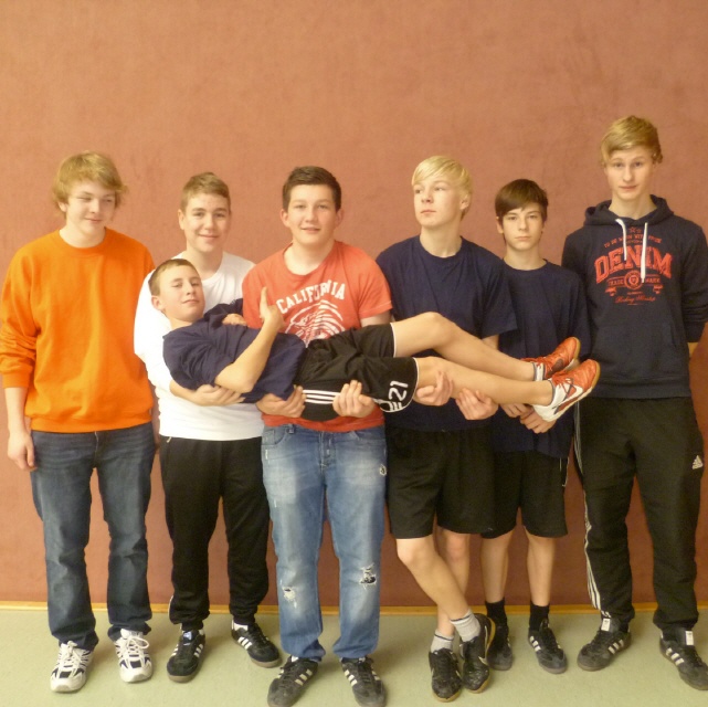 Beim diesjährigen Kreisfinale von "Jugend trainiert für Olympia" der WKIII zeigte unser Team eine ansprechende Leistung. Im ersten Spiel gegen das Gymnasium Wolgast boten unsere Jungs eine gute Leistung und hatten mehr Spielanteile. Leider wurde die 1:0 Führung (Friedrich Pysall) durch einen Torwartfehler verspielt. So blieb es beim 1:1. Im folgenden Spiel gegen die F.-Schiller Schule lief unsere Mannschaft auf Volltouren und fegte das gegnerische Team mit 5:0 (Kruse, Möller, Urbrock, Dietrich, Beyer) vom Platz. Im Halbfinale gegen die Heberlein-Schule Wolgast gingen unsere Jungs frühzeitig mit 1:0 (Dietrich) in Führung. Durch einen schmeichelhaften Elfmeter kurz vor Spielende konnten die Wolgaster ausgleichen. Im anschließenden Elfmeterschießen versagten dann die Nerven, am Ende hieß es 2:3 und Einzug in das kleine Finale um Platz 3. Gegen das Gymnasium Anklam machte unsere Mannschaft durch viel Kampfgeist ihre körperliche Unterlegenheit wett und ging verdient 1:0 (Urbrock) in Führung. Mit zunehmender Spielzeit konnten die robusteren Anklamer unseren Jungs den Schneid abkaufen und gewannen mit der letzten Aktion 2:1. Trotzdem herzlichen Glückwunsch zu einem tollen 4.Platz!!