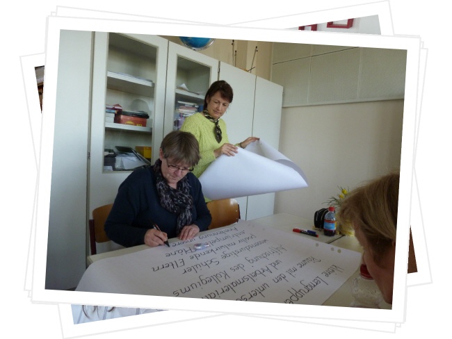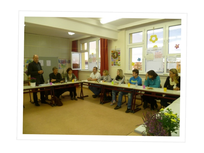 Am 11.10.2012 fand die erste gemeinsame Konferenz von Vertretern des Schulträgers, Eltern, Schülern, Lehrern und Koordinatoren des Schulversuchs statt. Unter der Leitung von Frau Schweder fand ein Workshop statt, welcher zur Ziel- und Maßnahmefindung dienen sollte. Nach einem Brainstorming in verschiedenen Arbeitsgruppen wurden die Ergebnisse anregend diskutiert. Dabei ging es u.a. um Rahmenbedingungen, Schulisches Lernen, Kooperation mit außerschulischen und schulischen Partnern, Qualifikation und die Steuerung bzw. Organisation. |