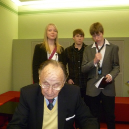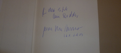 Hans-Dietrich Genscher war am 16.01.2013 zur 1. Kaisersaal-Diskussion Gast in Greifswald. Wir wollten uns natürlich dieses besondere Ereignis nicht entgehen lassen. Diese einmalige Gelegenheit haben wir im Rahmen des Sozialkundeunterrichts genutzt und vier Schülervertreter der Klassen 9 und 10 durften an dieser Veranstaltung teilnehmen. Mit Hilfe der Schule und des Fördervereines der Schule am Bodden wurde den Schülern dieser außergewöhnliche Abend ermöglicht, und somit konnten sie einen Einblick in das politische Engagement des außergewöhnlichen Politikers, der die deutsche Innen- und Außenpolitik wie kein Anderer prägte, erleben. Ihre Eindrücke werden sie auswerten und den Klassenkameraden anschaulich dokumentieren. Ein Autogramm für die Schule ins Buch "Hans-Dietrich Genscher" - Die Biographie von Hans-Dieter Heumann durfte natürlich nicht fehlen. |