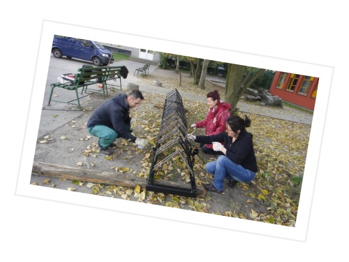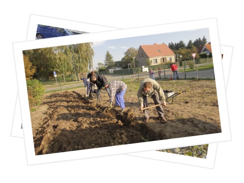 Bei schönem Herbstwetter fanden sich zu unserem ersten Arbeitseinsatz in diesem Schuljahr zahlreiche Eltern und sogar Kinder ein, um unseren Schulhof zu verschönern. Da wurden die Fahrradständer gemalert, neue Sitzgelegenheiten geschaffen, der Weidentunnel geflochten, im Schulgarten Mist untergegraben, Sträucher gepflanzt und die Arbeiten für eine Freilichtbühne begonnen. Selbst die Kinder waren mit Eifer dabei. Am Ende konnten alle Beteiligten nach drei Stunden fleißiger Arbeit feststellen, dass wir wieder ein Stückchen weitergekommen sind, um einen Schulhof zu schaffen, auf dem sich die Kinder gern aufhalten und in den Pausen gut erholen können. Unser Dank gilt allen beteiligten Eltern, Frau Dietrich, die den Stalldung organisierte, und der Landschaftsgestalterin Frau Tischer, die die Errichtung der Freilichtbühne nach unseren Wünschen plant, leitet und durchführt.