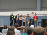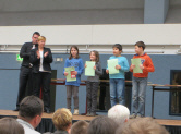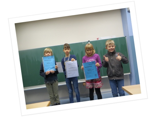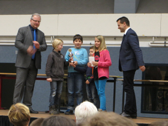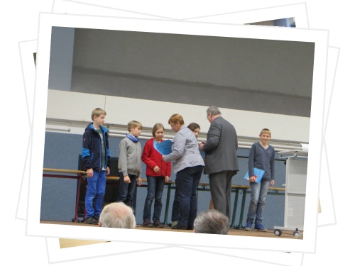 Besonders stolz sind wir auf das Ergebnis von Ashley-Lynn Bartel aus der Klasse 5b. Mit 335 von 350 möglichen Punkten wurde sie Siegerin aller in Deutschland angetretenen Fünftklässer. Glücklich und aufgeregt konnte sie ihren Pokal bei der Siegerehrung entgegen nehmen.