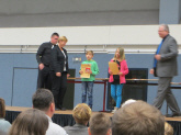 Die "Schule am Bodden" gewinnt den Wanderpokal für die beste Grundschule gestiftet vom Lions-Club Greifswald. Übergeben wurde der Pokal von Herrn Leider.