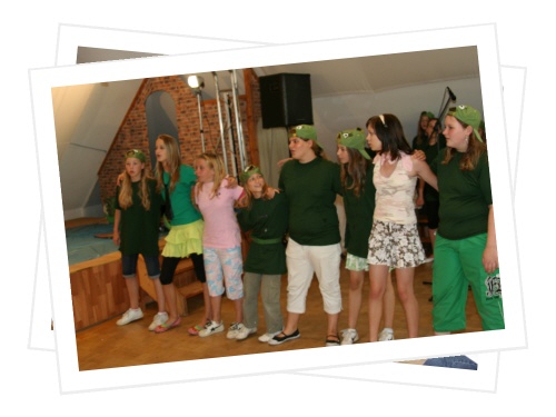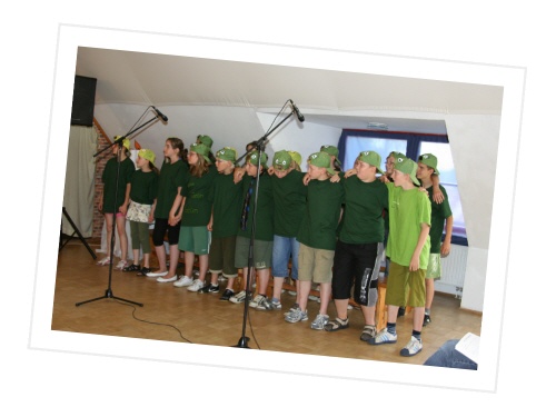 Neuenkirchener Schüler führten Musical aufDie Geschichte des rosaroten Frosches Pinkus Quak wurde unter großem Beifall von den Schülern der 6. Klassen der Regionalen Schule Neuenkirchen im Saal der Feuerwehr vor Mitschülern, Eltern, Großeltern, Lehrern und Gästen aufgeführt. Die leicht ins Ohr gehenden Melodien und der Discotanz der Frösche rissen die Anwesenden begeistert von den Sitzen. Ein Jahr lang hatten sich die Schüler unter Leitung von Musiklehrer Wilfried Schulze auf dieses Event vorbereitet. Dank für die musikalische Unterstützung gilt der Musikschule Fröhlich. Es wurden in einem fächerübergreifenden Projekt und im Rahmen der Ganztagsschule Lieder, Texte und Tänze einstudiert sowie Kulissen und Requisiten gebastelt. Erzählt wurde ein musikalisches Märchen, welches für gegenseitiges Verständnis, Entgegenkommen und Toleranz warb. Die Reise nach Quakitanien regte Darsteller und Zuschauer zum Nachdenken an. In der Schule am Bodden konnte damit noch einmal ein Höhepunkt zum erfolgreichen Abschluss der Orientierungsstufe im Rahmen des Längeren gemeinsamen Lernens bis Klasse 6 gesetzt werden. Allen beteiligten Schülern gelten unsere besten Wünsche für ihren weiteren schulischen Werdegang.