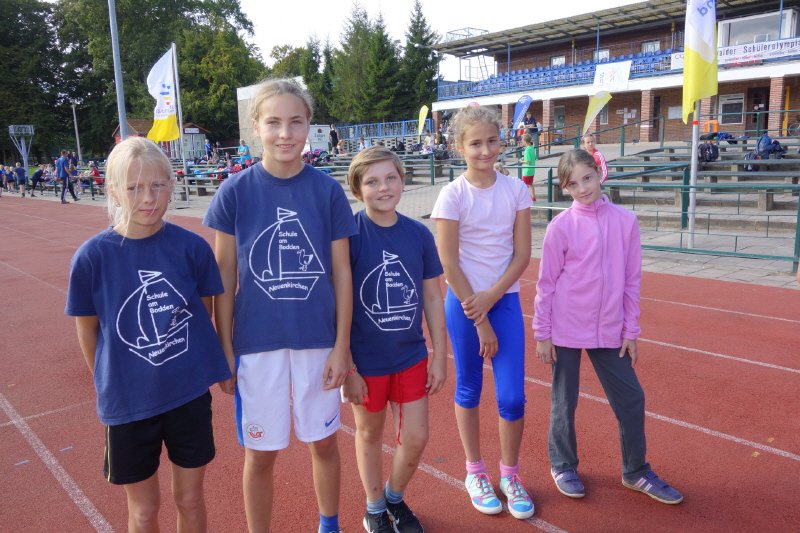 Auch in diesem Schuljahr fand an einem sonnigen Septembertag (11.9.2013) der Leichtathletik – Teamcup der 5./6. Klassen im Volksstadion Greifswald statt. Unsere Sportler kämpften mit sechs weiteren Schulen um die begehrten Plätze und Punkte in 5 Disziplinen (60m, Weitsprung, Ballwurf, 800m, 4x100m). Laura Melms erkämpfte sich den 2. Platz mit 9,2s über 60m und Mathilda Neumann erreichte über 800m mit 3:03 min ebenfalls einen hervorragenden 2.Platz. Am Ende reichte es in der Mannschaftswertung der Mädchen für den Platz 5 und bei den Jungen für den 4. Platz. Allen Teilnehmern danken wir für ihren sportlichen Einsatz und sagen herzlichen Glückwunsch.